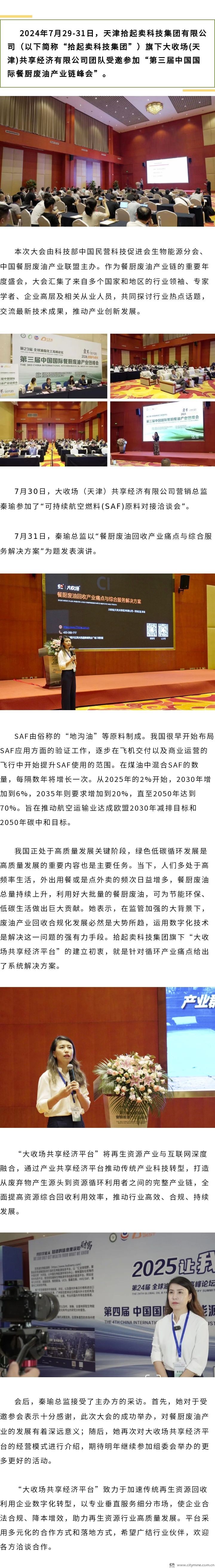 米兰体育app链接失败旗下大收场受邀参加第三届中国国际餐厨废油产业链峰会