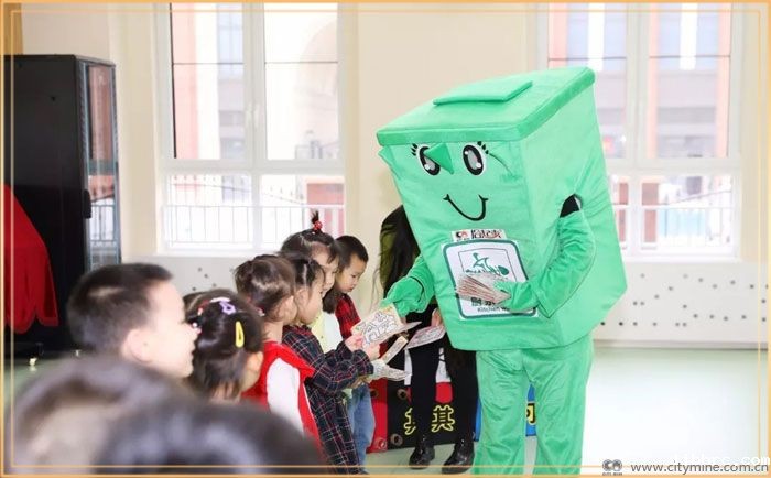 随后,通过与垃圾桶人偶互动完成垃圾分类的游戏方式,引导小朋友们识别垃圾分类的标志、分辨垃圾的种类等,教育孩子们在日常生活中主动、自觉地进行垃圾分类,养成分类的好习惯。