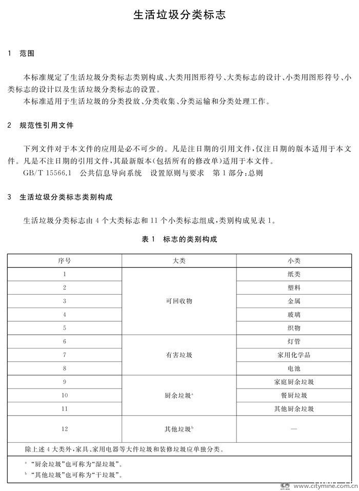 2019年11月18日日前,国家市场监督管理总局、中国国家标准化管理委员会发布《生活垃圾分类标志》,全文如下: