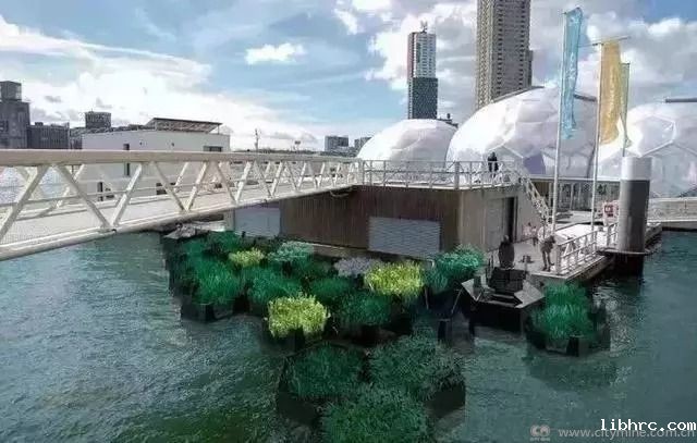 荷兰的浮动公园由专业设计人员耗时5年打造,面积达140平方米,而用作公园搭建的28个六边形连接块,全部是由从港口和河流中回收的塑料废弃物制成。