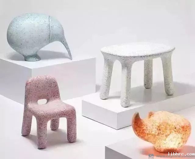 ecoBirdy品牌经过为期两年的针对可持续回收塑料玩具方法的深入探索,最终创造出采用100%回收废旧塑料制作的产品。包含座椅、桌子、收纳工具和台灯。