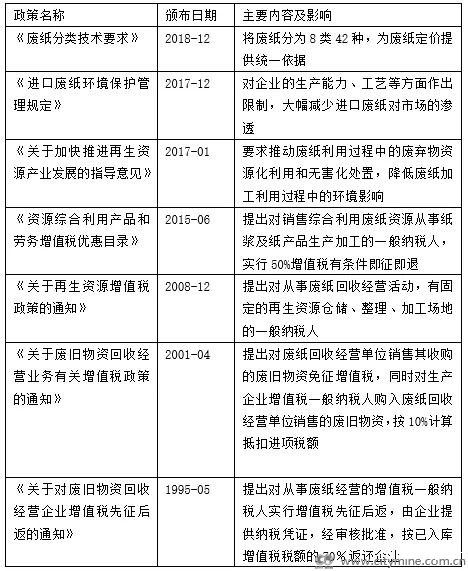 自1995年以来,中国政府发布并实施系列政策促进废纸回收行业发展。