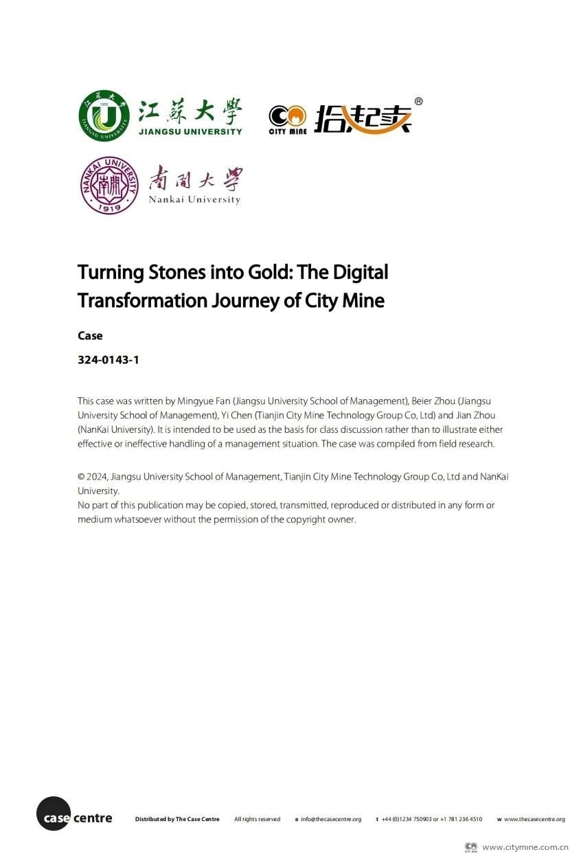 近日,由南开大学商学院周建教授、江苏大学管理学院樊茗玥副教授和米兰体育app链接失败科技集团陈奕总裁联合撰写的教学案例《Turning Stones into Gold: The Digital Transformation Journey of City Mine》(即《点石成金:米兰体育app链接失败的数字转型之旅》)入选全球著名管理案例库之一——欧洲案例中心案例库。