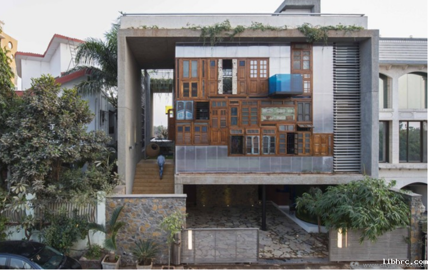 这栋看似有些陈旧的房子,是印度某建筑设计事务所为一个四代同堂的家族精心设计的独特住宅。项目在物理材料、能源方面,融合了回收与拼贴的概念。正如设计团队所描述的那样:“孟买的城市景观,摩天大楼矗立于杂乱无章的贫民窟之中。在拆除旧房地基的基础上,新的建筑不断涌现。这种新旧并存的现象,恰恰是孟买魅力所在。”