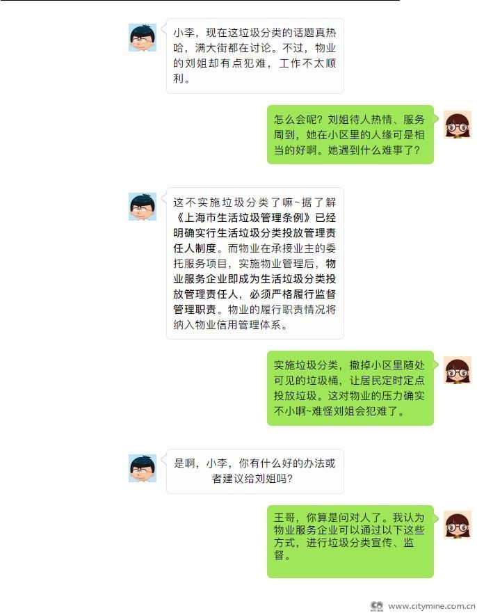 无论是画报文字,还是物业的app等途径,都是为了让大家尽快意识到垃圾分类的重要性和必要性。「定时定点」的生活垃圾分类给业主的日常生活带来不便,短时间难以接受。物业的第一步就是要对居民进行宣传引导,可以张贴分类公告,发放宣传手册等方式,争取覆盖到每一位居民。