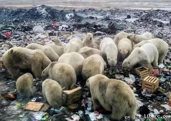 这个视频是几只北极熊在垃圾堆里面觅食的画面!