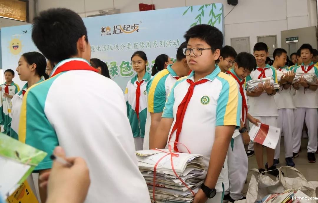 活动中,学校师生以个人或小组为单位,积极收集生活垃圾中的可回收物,并将收集的废品通过称重、计数等方式在“绿色银行”兑换成环境能量。